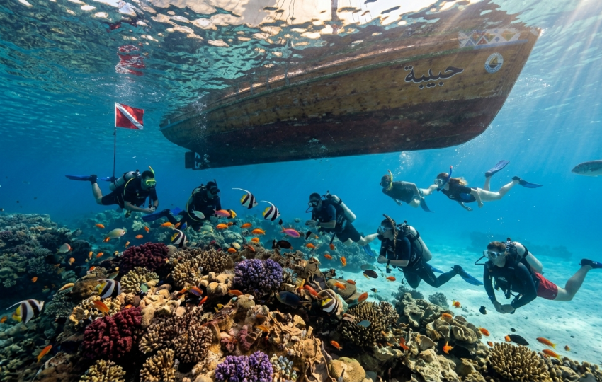 Escape to the crystal-clear waters of the Red Sea with an unforgettable snorkeling This full-day experience combines relaxation, adventure, and breathtaking scenery. You’ll cruise across the turquoise waters of the Red Sea, stopping at some of the best snorkeling spots where you can explore colorful coral reefs and swim alongside tropical fish.
